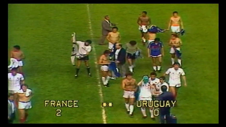 La défense fut égale à elle-même, c'est-à-dire intraitable, ne laissant que fort peu d'occasions aux Uruguayens d'inquiéter Joël Bats. Michel Bibard, à droite, a confirmé d'immenses progrès, en particulier dans le soin apporté à la relance et dans le soutien offensif. Avec les moyens physiques exceptionnels qui sont les siens, le néo-Parisien est en train d'atteindre le tout meilleur niveau international. A gauche, William Ayache fut lui aussi excellent, mais il semble que si Manuel Amoros est en forme, sa présence dans l'équipe soit indiscutable. Yvon Le Roux a effectué une rentrée tout à fait satisfaisante, apportant bien sûr le poids de sa présence physique. Quant à Maxime Bossis, qui égalait ce soir-là le record de sélections de Marius Trésor (65), il a confirmé ce qu'il disait dans ces mêmes colonnes, il y a peu : à savoir que le fait d'opérer en Division 2 n'avait effectivement aucune influence néfaste sur son niveau international. Le grand Max fut exemplaire, comme toujours. Enfin, Joël Bats passa une soirée relativement calme, démontrant, s'il en était besoin, qu'il est bien le meilleur à son poste. Henri Michel, en dressant le bilan de la rencontre, pouvait arborer un large sourire. Quant aux Uruguayens, ils avaient surtout impressionné par leur brutalité. Qui ne devrait tout de même pas leur permettre de jouer les premiers rôles dans un Mundial 86 pour lequel ils sont déjà qualifiés. Boras, l'entraîneur national, a du pain sur la planche!